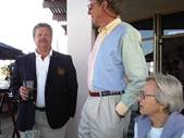 Left: Blue Moon leads Skimmer and Hot Tub around the leeward mark. Center: Bobby Frey discusses the races with Bob Spann and Beth Whiteley. Right: Skimmer slides by to leeward as Orion luffs up.
